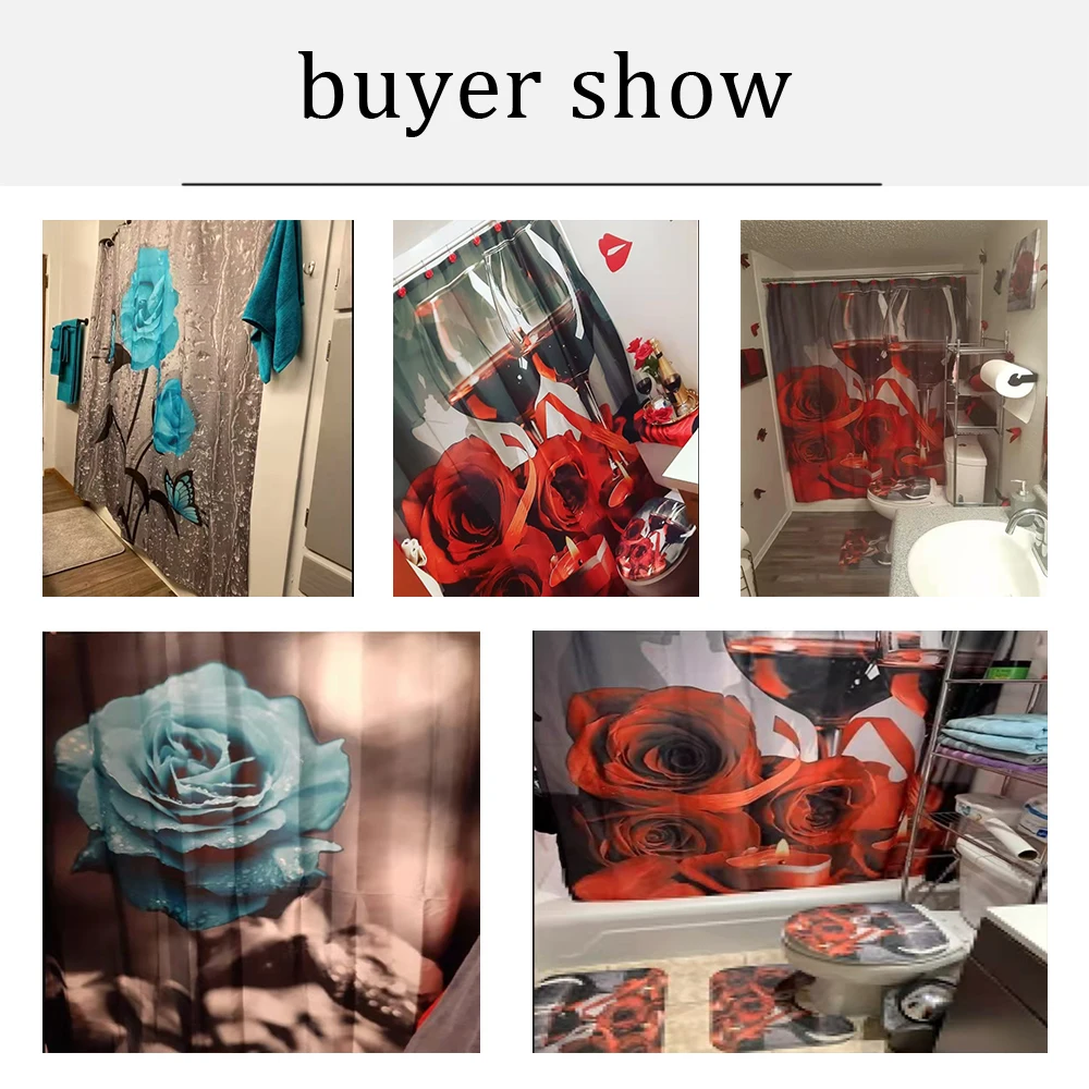 - EXQUISITE FEATURES: With high quality material, Our Valentine's Day shower curtain adopts advanced HD pattern printing technology. Composed of romantic red rose and wine, with vivid colors and clear image,will change your bathroom into a new and clean space with unique style. No need to worry about fading.